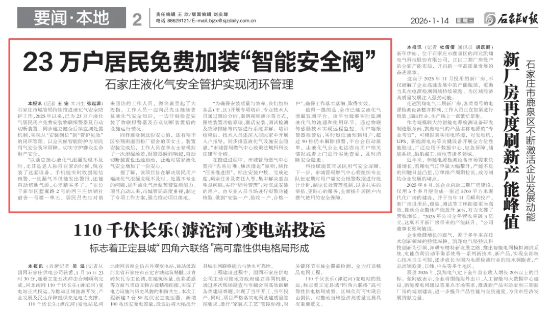 23万户居民免费加装“智能安全阀”石家庄液化气安全管护实现闭环管理