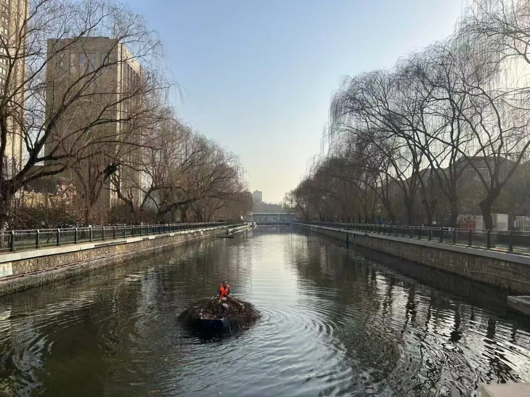 该中心通过持续补水与精准调控,水体透明度显著提高,吸引了多种水鸟栖息驻足,为民心河增添了生机与灵动。针对未结冰河段,统筹调配120名管护人员,分段负责,开展水面保洁专项行动。采取杂物集中装袋、日产日清的方式,日均打捞漂浮物约25立方米,有效保障水面洁净。同时,有计划、分步骤推进设施设备的维修、保养与更新工作,多措并举确保河道设施及中水补水系统安全稳定运行。