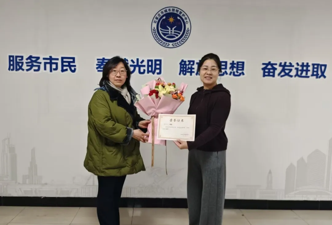 在第63个学雷锋纪念日暨第26个中国青年志愿者服务日到来之际,市城市照明管护中心照明监控中心主任、机关党支部书记唐景玲收到了一份特别的礼物——河北明珠志愿服务队为她送上的鲜花。