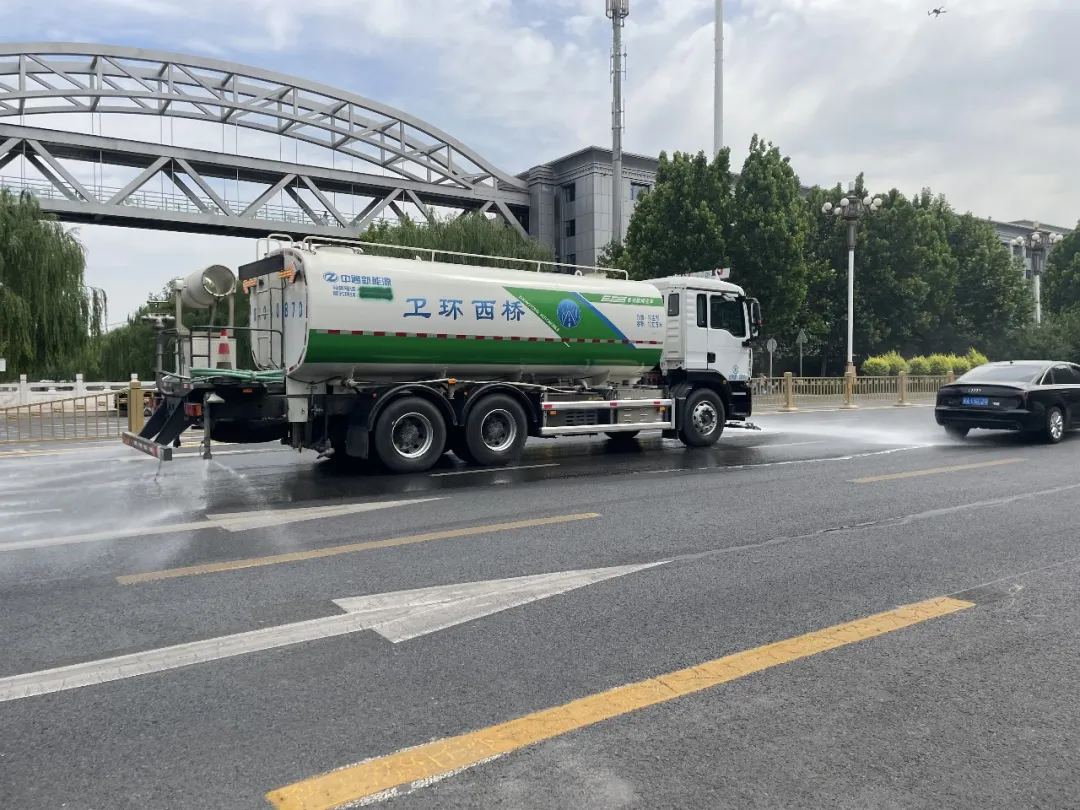 行动期间,每日集中高压冲洗车、多功能洗扫车辆,对辖区快车道、慢车道、便道及桥下空间错峰进行全面冲洗和湿扫作业,最大限度降低对交通影响。采用上午多功能洗扫车喷洒,下午洒水车花洒的作业方式,对主街主路进行洒水抑尘作业,力求达到“车过地净,路见底色”目标。