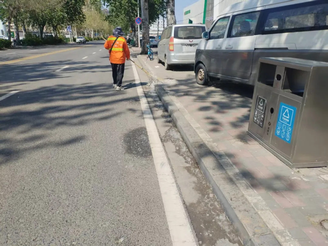针对杨柳飞絮“随风飘散、遇干则飞”的特点,裕华区环卫大队优化调整了作业模式:加大喷雾降尘频次,利用雾炮车、洒水车在飞絮高发路段进行不间断喷雾作业,增加空气湿度,使飞絮受潮后快速沉降到路面,避免二次飘散。同时,强化湿扫收集,主次干道全部采用机械化洗扫车作业,对落地的杨柳絮及时进行清扫作业,杜绝了人工清扫可能造成的“扬扫”现象。对于背街小巷、便道、公交站台、道牙边以及绿化带边缘等大型机械难以作业的区域,采取“人工+小机械”的模式进行冲刷,将飞絮和尘土冲至路面,再由大型洗扫车跟进收集。同步增加人工巡回保洁频次,重点对墙角、树坑、隔离栏下等飞絮容易堆积的地方进行随落随清,确保路面干净整洁。