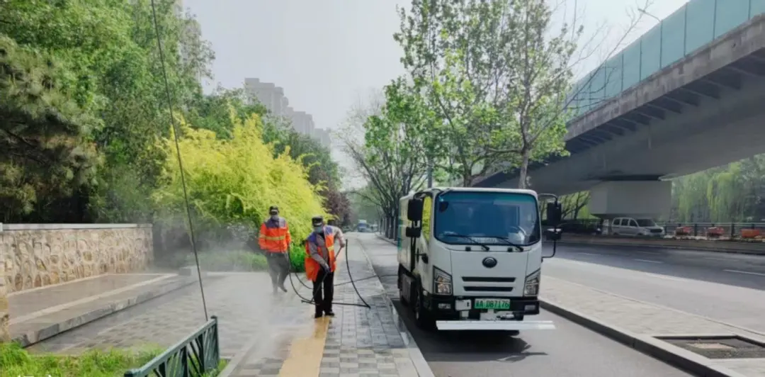 同步推进道路两侧环境整治,常态化清理绿地垃圾、落叶,冲洗苗木,提升管护频次,实现绿地无杂物、苗木无浮尘,全面提升城市道路及周边景观整洁度。