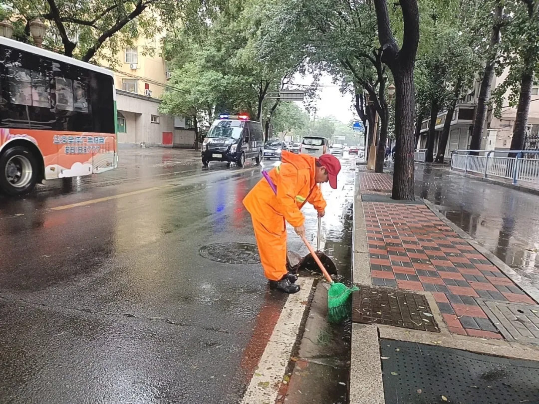 近日,我市连续降雨,长安区环卫工人全员上岗,及时开展道路清淤、收水口疏通、路面推水等作业,全力保障市容整洁。