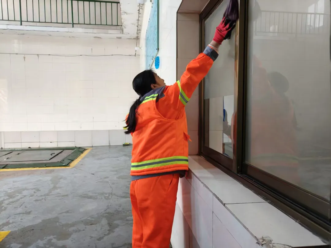 该环卫大队按照“全覆盖、无盲区、无遗漏”原则,对各站点进行深度清洁,加强垃圾大箱、排水沟等重点部位地冲刷、清洗,再对墙面、地面、平台等区域进行擦拭,确保洁净无死角。对转运车辆车容车貌进行整治清洁,包括车身、轮胎等部位,让车辆外观整洁,标识清晰。同时,对制度牌、宣传牌等进行擦拭,发现破损及时更换,作业工具摆放固定区域,确保洁净有序。