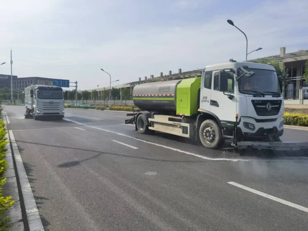 同时,重点加强城乡接合部、工地周边、出入市口等区域循环湿扫保洁工作,严控道路扬尘。针对机械无法作业的路段,采用小型高压冲洗车+人工清扫模式,集中冲洗工地周边、城乡接合部慢车道、便道、公交站台,确保清洁无死角。